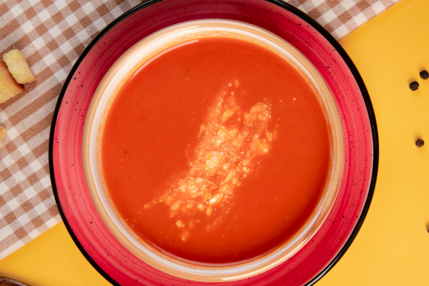 Nada más mediterráneo que un gazpacho… pero esta versión veraniega le da un giro inesperado. El melocotón aporta una suavidad afrutada que equilibra la acidez del tomate y llena de frescor cada cucharada.